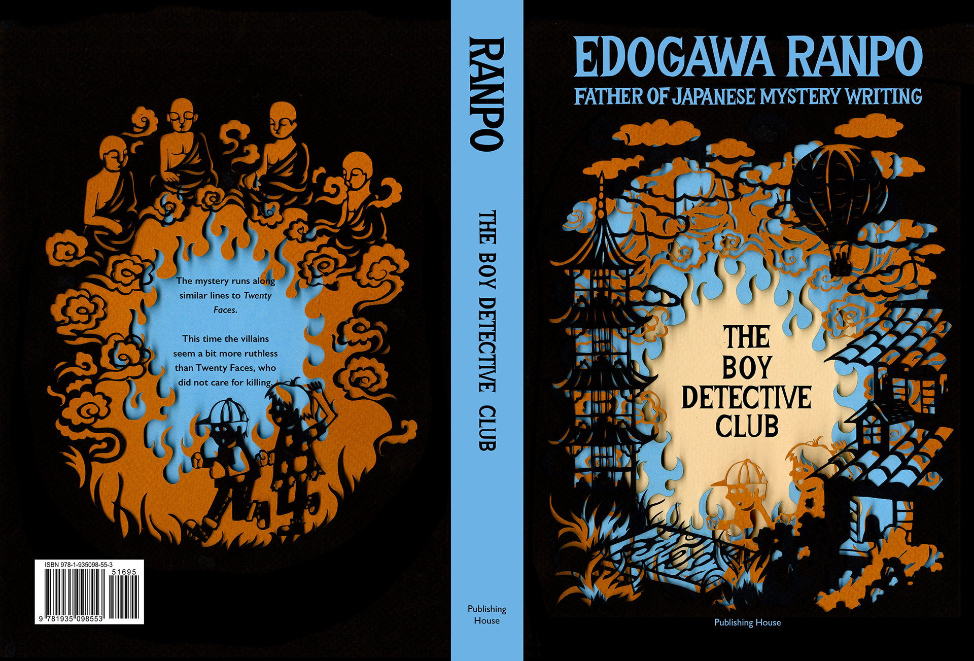 A series of book cover design for Japanese mystery writer Edogawa Ranpo's four novels: The Demon of The Lonely Isle, Beast In The Shadows, The Fiend With Twenty Faces, The Boy Detective Club. Made with layers of cut papers.