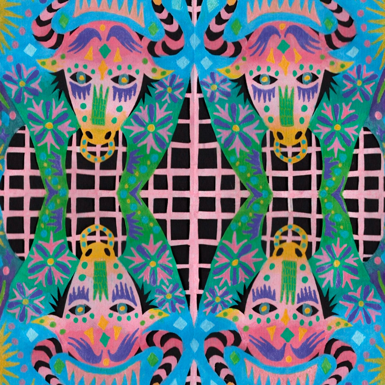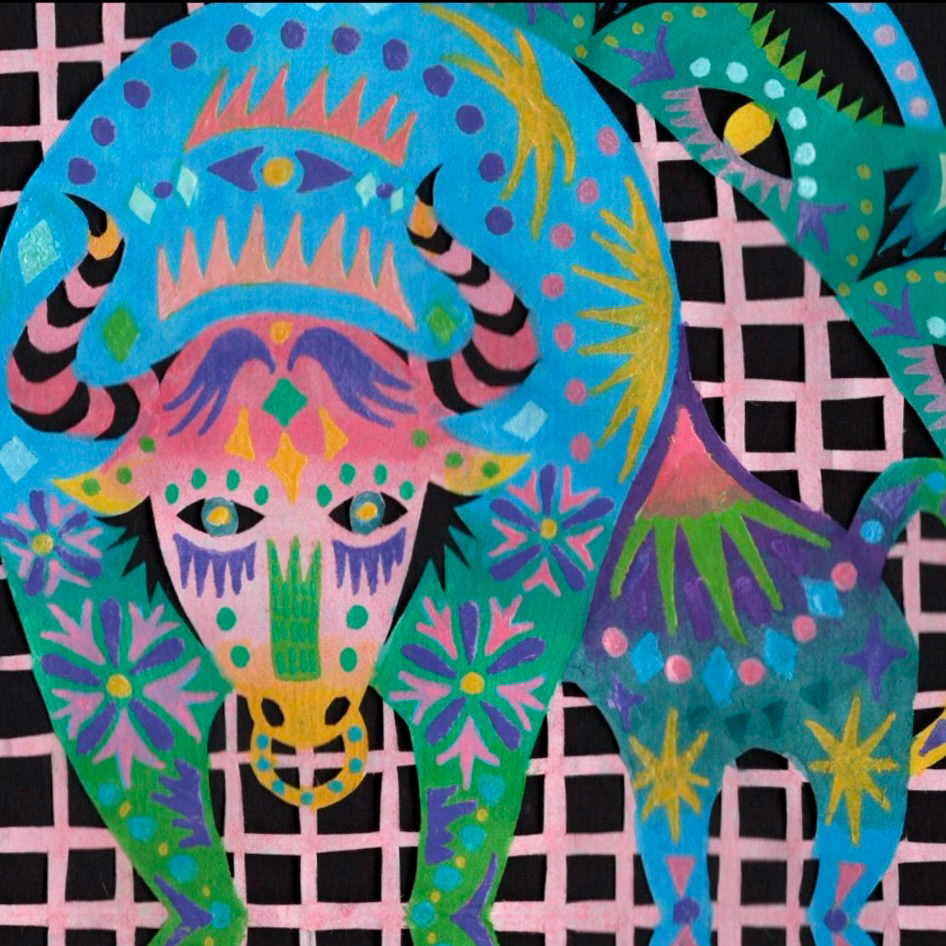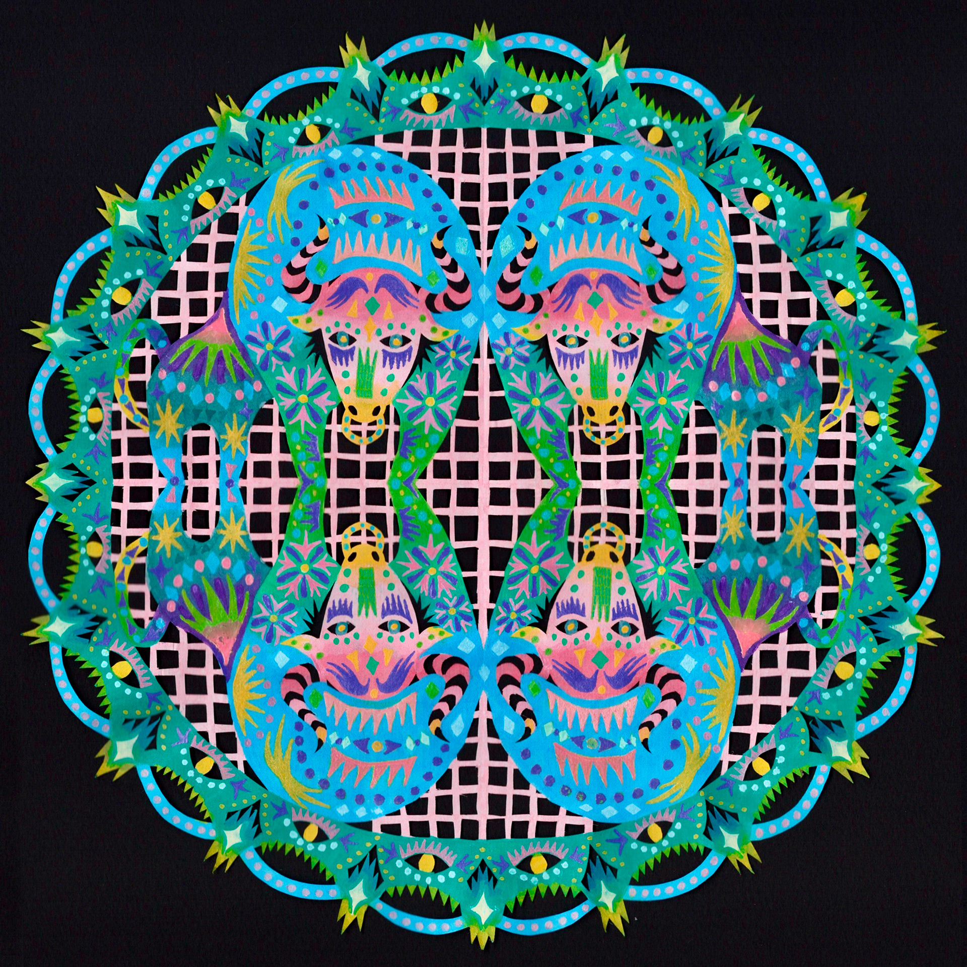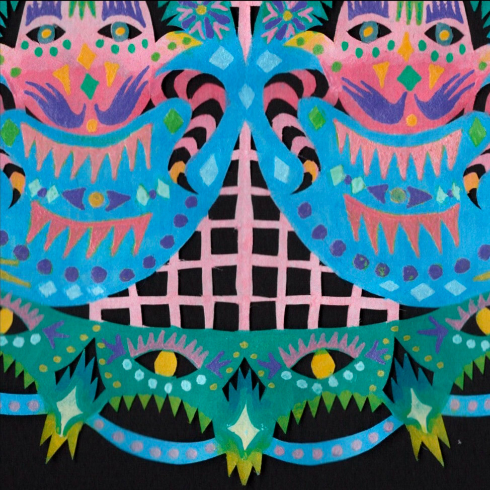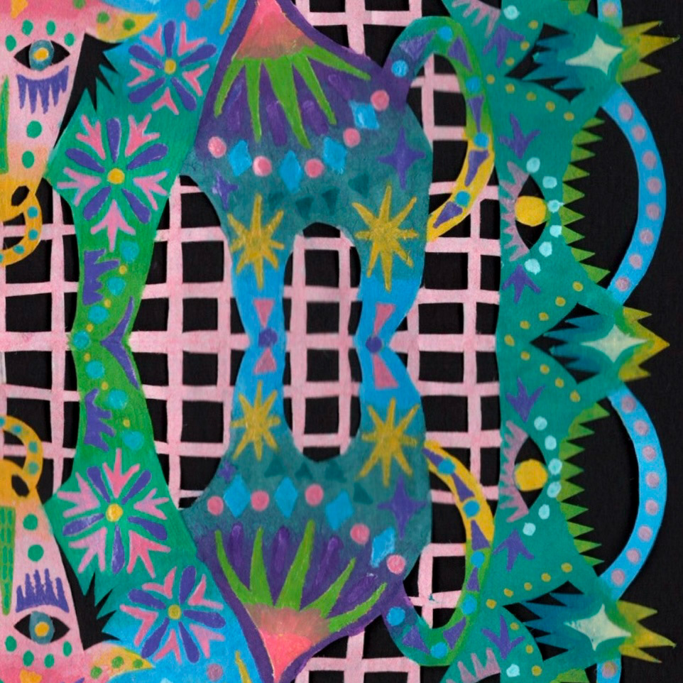 Paint marker on cut paper, 9"x9"
